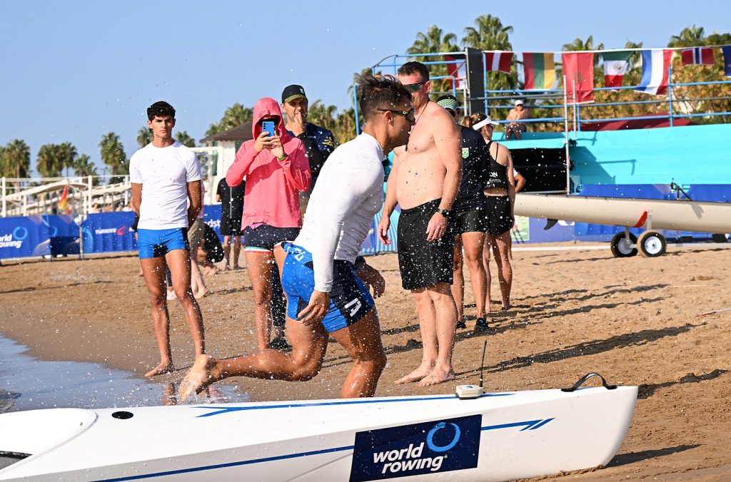 Dalle 8.56 infine scendono in acqua ben 30 doppi misti U19: primi otto passano il turno, gli altri vanno al secondo TT per il recupero. L’Italia, con Pasquale Tamborrino e Silvia Messina, partirà per dodicesima, prima di lasciare il testimone ai Senior. Qui a partire dalle 11.00, contro altri 37 sculler, sarà in gara lo specialista Giovanni Ficarra, al via per quinto con il dichiarato obbiettivo di chiudere tra i primi otto per bypassare il recupero. Dalle 12.30 spazio ai quattro di coppia misti con timoniere, con l’atteso debutto nel beach sprint per i campioni mondiali assoluti del quadruplo flat rowing Giacomo Gentili e Andrea Panizza, in barca con Ilaria Bavazzano, Maria Elena Zerboni e con al timone lo stesso Ficarra. L’ammiraglia beach azzurra parte per quinta, e solo i primi due sui 14 equipaggi in gara passano diretti ai quarti, mentre i restanti sei saranno decretati dai match race di recupero. Infine alle 12.56 via per i 32 doppi misti in gara, con l’Italia che punta ancora su Federico Ceccarino e Federica Cesarini. L’Italia, argento iridato in carica nella specialità, partirà per seconda, e anche qui occorrerà chiudere tra i migliori otto per scampare al TT di recupero.
