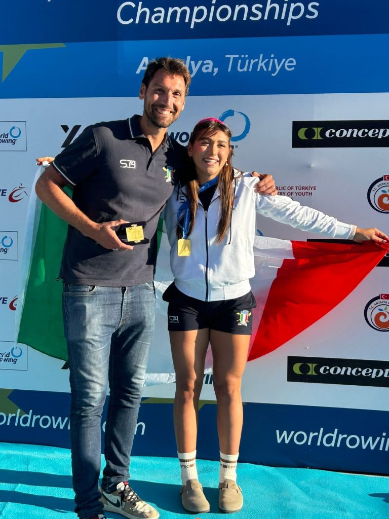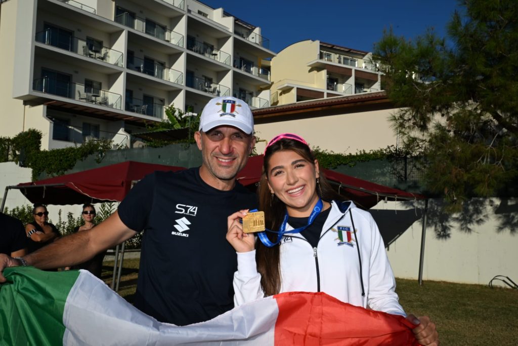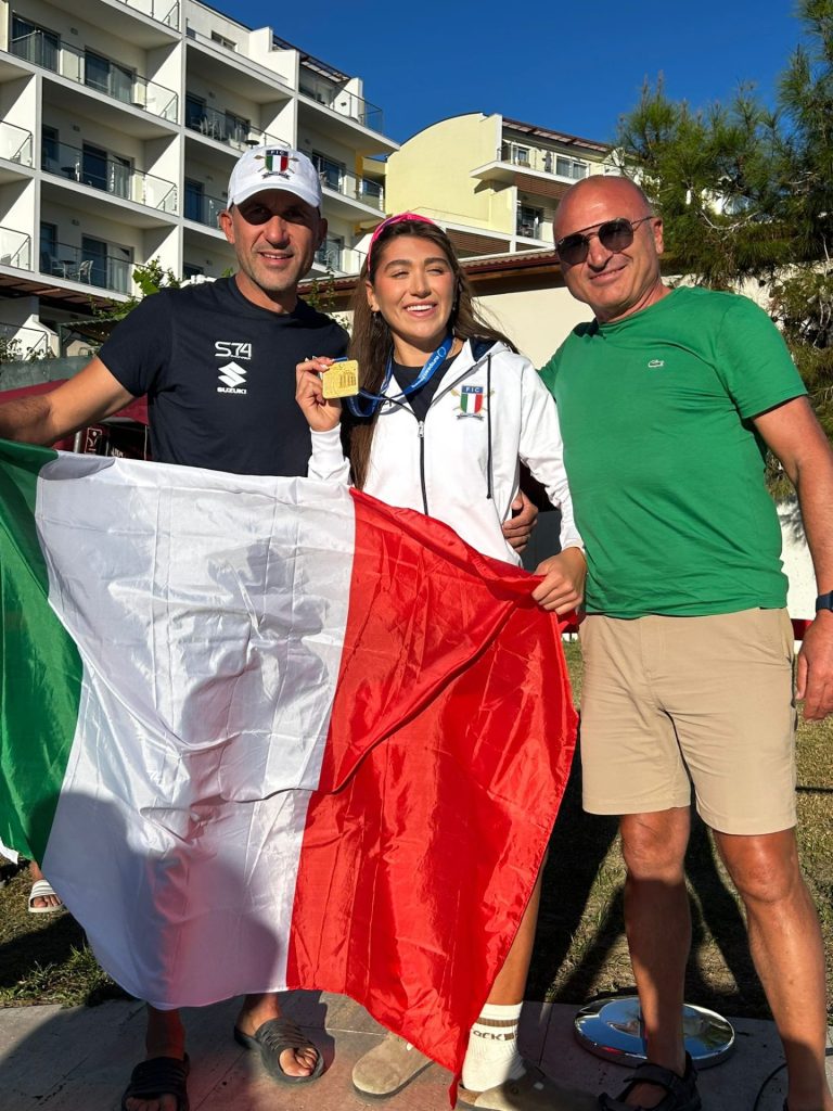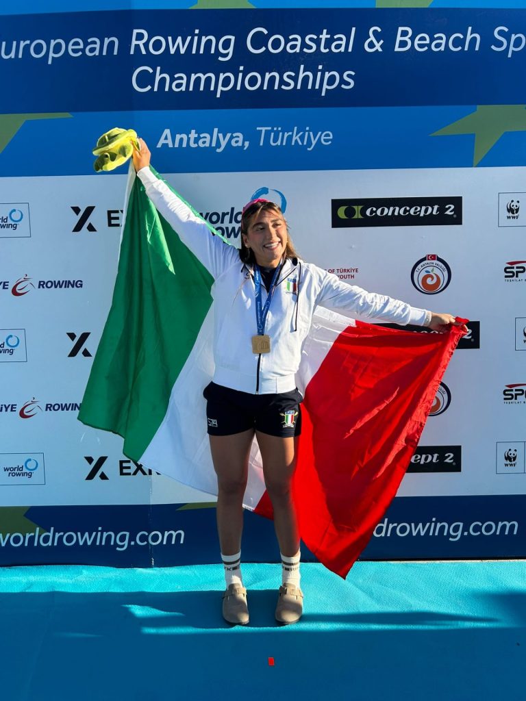 Maria Lanciano corre velocissima verso la sua imbarcazione ed è la prima a staccarsi dalla spiaggia con il supporto degli handler Cosimo Cascella, Serena Lo Bue e Roberto Pusinelli. Molto determinata la sua azione, focalizzata sull’obiettivo con un elevatissimo numero di colpi nella nella prima parte del percorso, l’atleta della LNI Barletta arriva alla boa con un buon margine su Aleksandra Grigoreva (atleta individuale neutrale): un vantaggio che la spinge ad affrontare la virata con grande prudenza. Scelta premiata, Maria può remare verso la spiaggia con tutte le sue energie. L’avversaria subisce un distacco pesante e per Maria il percorso barca-traguardo si trasforma in un Red carpet! Eccezionale, fantastica, unica! Campionessa d’Europa! ITALIA CAMPIONE D’EUROPA!