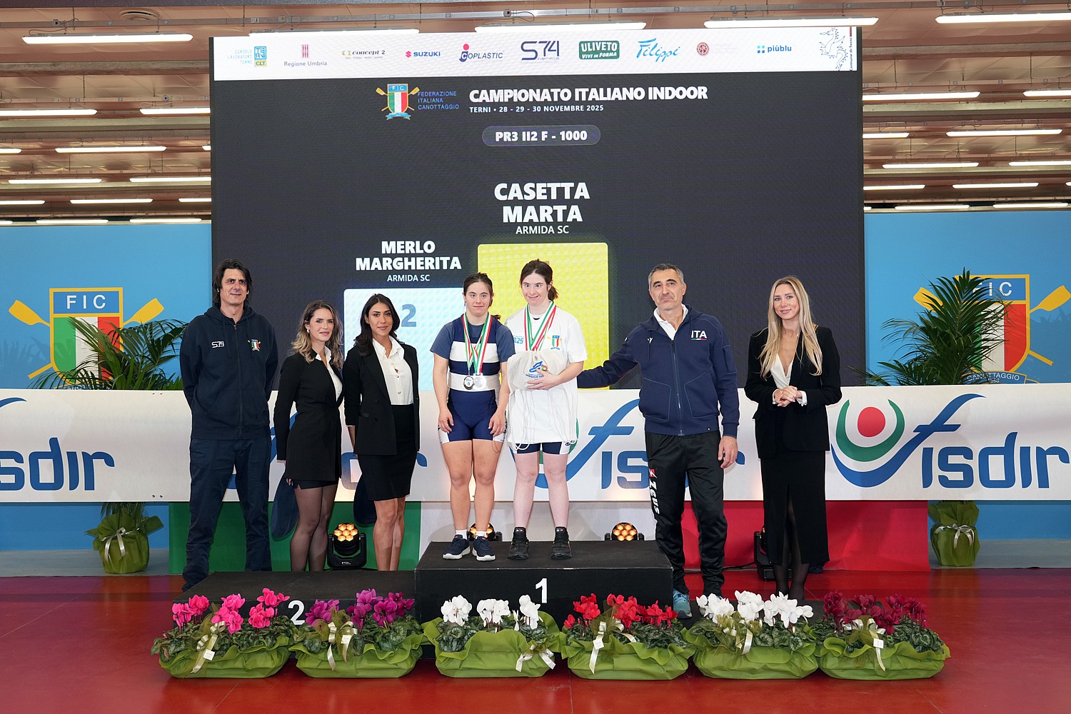 Le gare Pararowing e Master hanno concluso a Terni la prima giornata tricolore indoor, con l’assegnazione dei titoli italiani sui 1000 metri. Per quanto riguarda il Pararowing, rispettano il pronostico i campioni azzurri FISDIR e primatisti internazionali al remoergometro Marta Piccininno (CC Irno) e Francesco Saverio Di Donato (Accademia del Remo), che fanno loro il titolo italiano nelle categorie PR3 II1-FISDIR femminile (argento Jessica Sileo per la SC Armida, bronzo Olga Marino dei VVF Tomei) e maschile (argento Ferdinando Santini dell’Accademia del Remo, bronzo per Daniele Matullo della SC Armida).