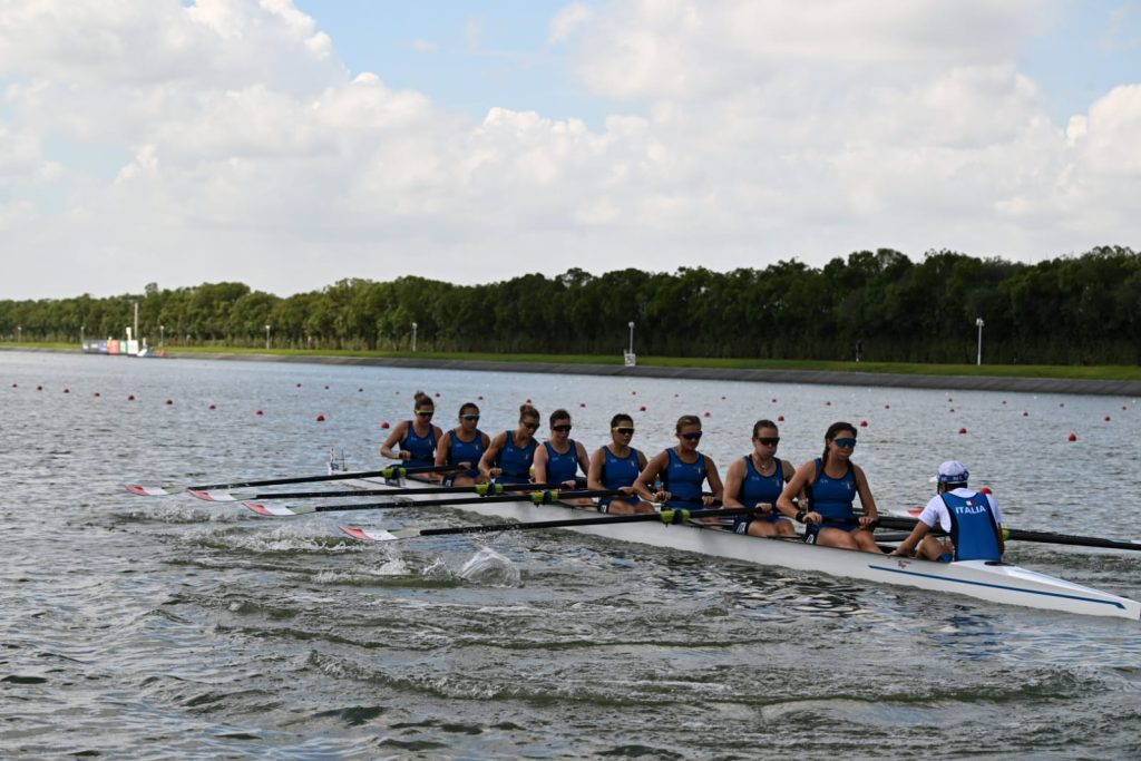 Emanuele Gaetani Liseo, Salvatore Monfrecola, Giovanni Abagnale, Matteo Sartori, Leonardo Pietra Caprina, Giuseppe Vicino, Nunzio Di Colandrea, Giovanni Codato, con al timone Alessandra Faella, distribuiscono bene le proprie energie lungo l’intero percorsa. Attenta e intelligente lettura di una batteria che, come da pronostico, vede la Gran Bretagna comandare. A metà gara, Italia quarta a 1.10 dai polacchi e 2.49 dagli australiani. Il primo affondo è sulla Polonia, superati prima dei 1500 metri, e poi arriva l’attacco sull’Australia che non riesce a contrastare l’effervescente finale di gara azzurro. C’è ancora la Gran Bretagna là davanti, prima posizione mantenuta al traguarda ma con soli 76 centesimi su una super Italia. Grandissima dimostrazione di forza, qualificazione assicurata con il tempo di 5.41.83, inferiore anche a quello registrato da Olanda (5.42.29) e USA (5.46.36). Fuori dal Mondiale la Germania, prossimo appuntamento con l’otto azzurro sabato alle 9:18 (le 15:18 a Shanghai) per una finale attesa da 7 anni. ITALIA IN FINALE.